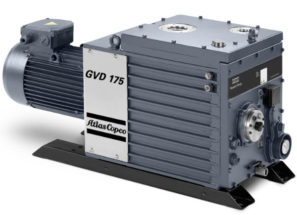 Atlas Copco GVD 175 serisi çift kademeli yağ sirkülasyonlu vakum pompaları 160 m³/h debi, 1x 10E-3 mbar 'a (abs) kadar yüksek vakum final basıncı gerektiren uygulamalar için ağır çalışma koşullarında kesintisiz çalışmaya uygun yüksek performanslı ideal vakum pompalarıdır.